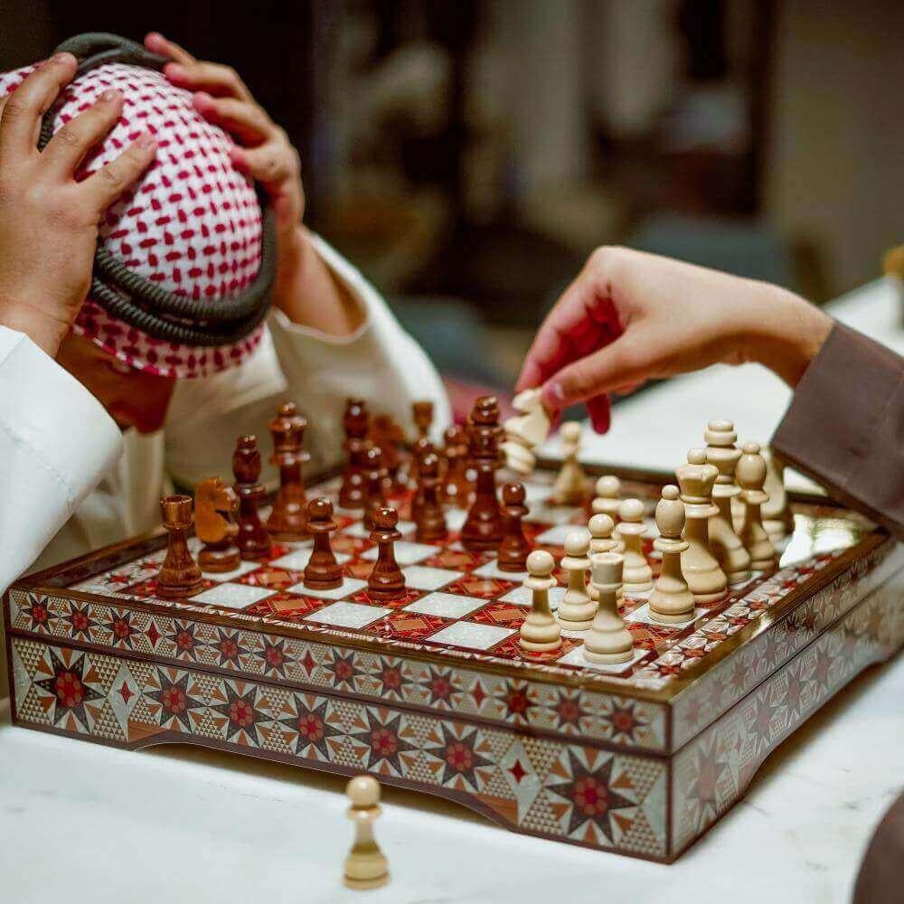 - طقم شطرنج كل قطعة تحمل فيه ملمس أصيل وثقل يعطيك إحساس بالقوة والهيبة.