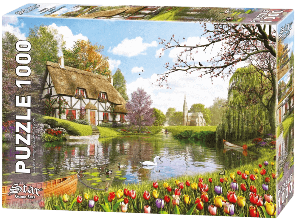 تخيل تكمّل 1000 قطعة وتلقى قدامك لوحة كوخ على ضفاف البحيرة بجمال الطبيعة وسحر الألوان
